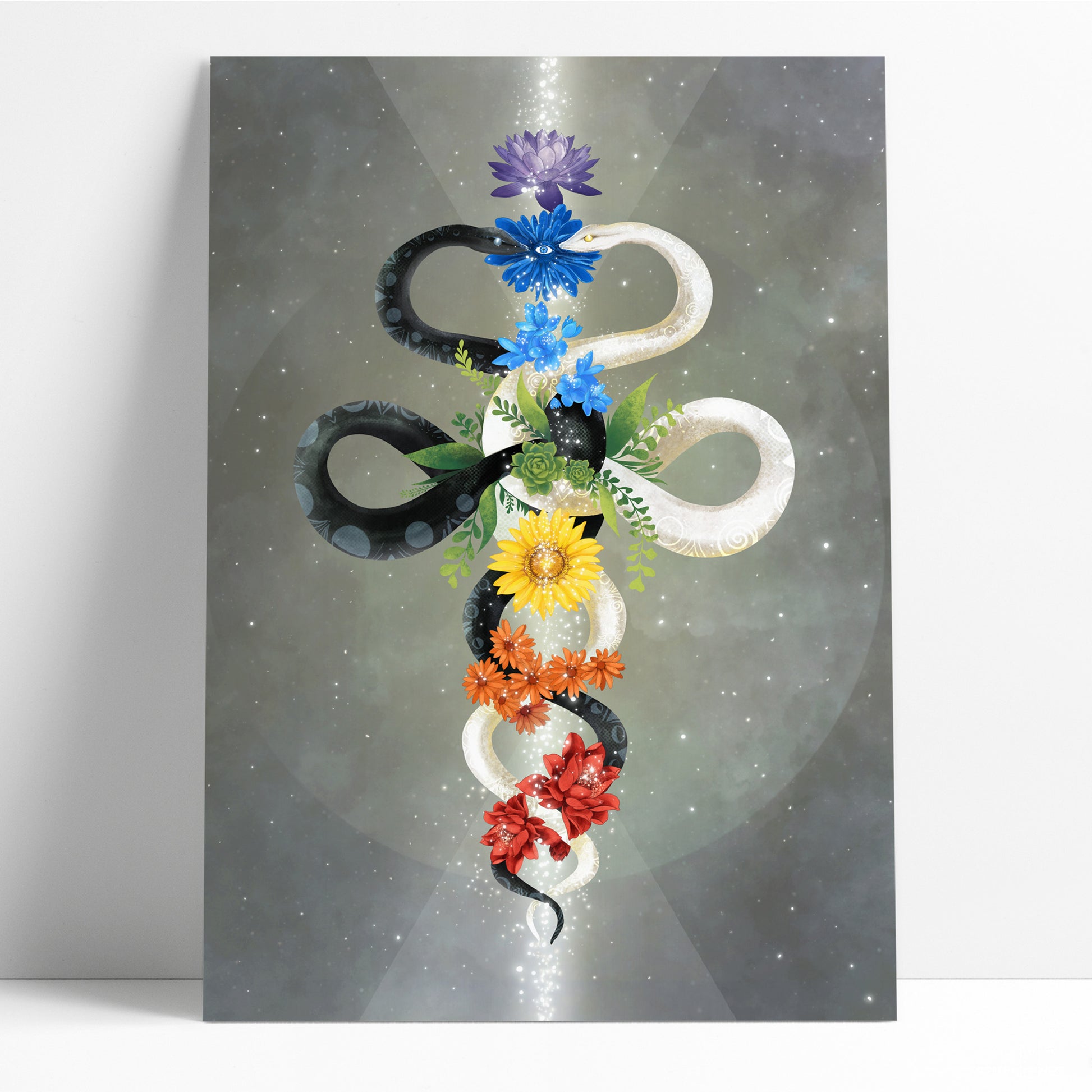 This chakra wall art illustrates the three main energy channels, or Nadis, from Hindu philosophy: